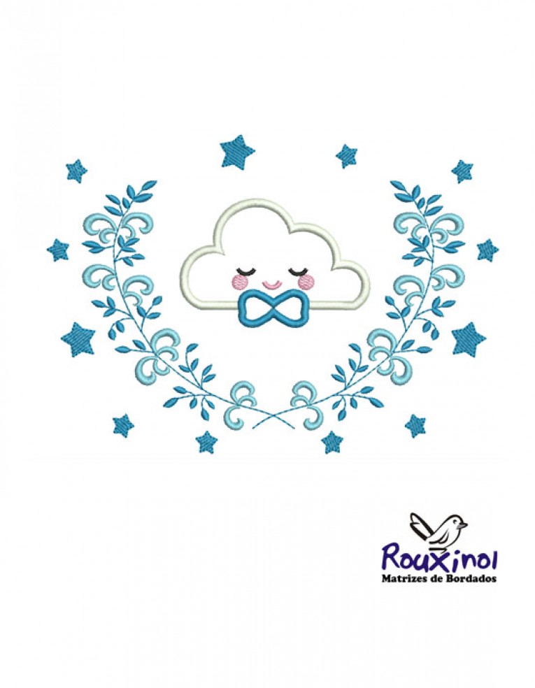 matriz de bordados aplique nuvem com arabescos menino
