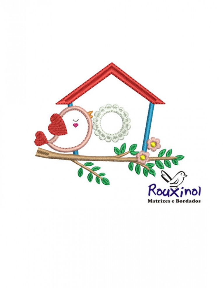 matriz de bordados com casinha passarinho aplique
